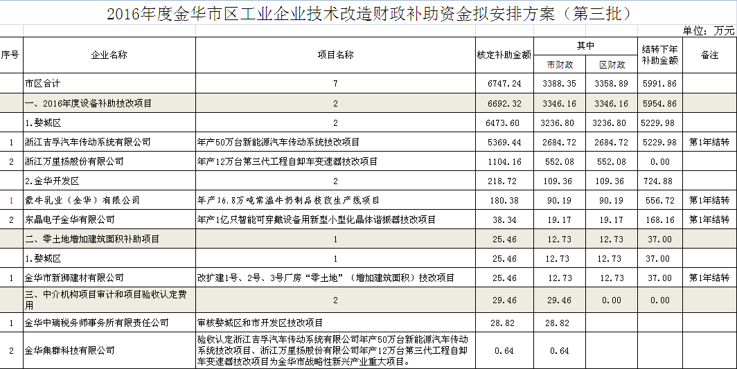 詳見附件:2016年度金華市區(qū)工業(yè)企業(yè)技術(shù)改造財政補(bǔ)助資金擬安排方案。