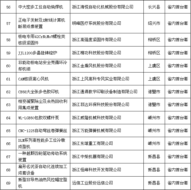 附件:2018年度浙江省裝備制造業(yè)重點領(lǐng)域首臺(套)產(chǎn)品認定結(jié)果公示名單