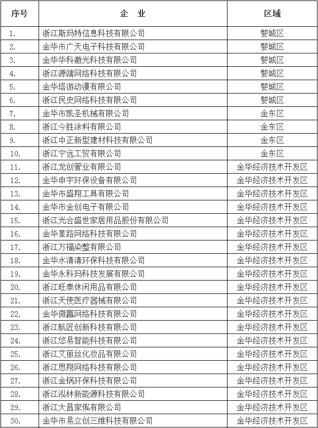 附件:2018年第一批金華市高新技術企業(yè)認定名單