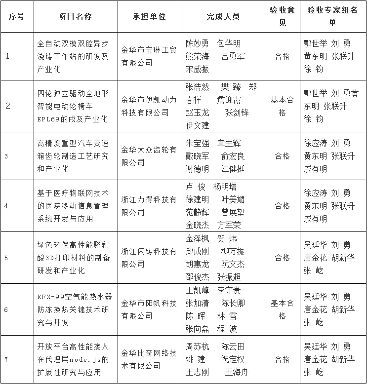 金華市級科技計劃項目驗收結(jié)果公示清單