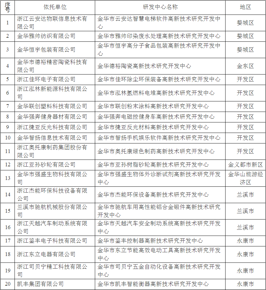 2018年第一批金華市擬認(rèn)定高新技術(shù)研發(fā)中心名單