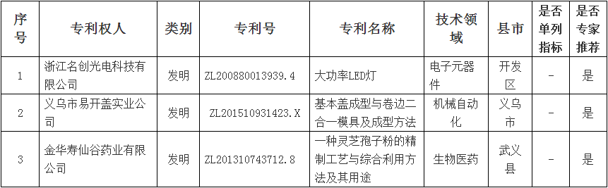 2018年浙江省專利獎(jiǎng)金華市擬推薦項(xiàng)目名單(第二批)
