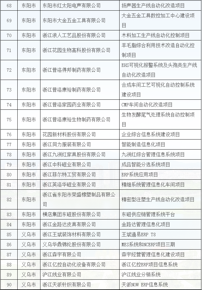 2018年金華市兩化融合重點(diǎn)項(xiàng)目名單
