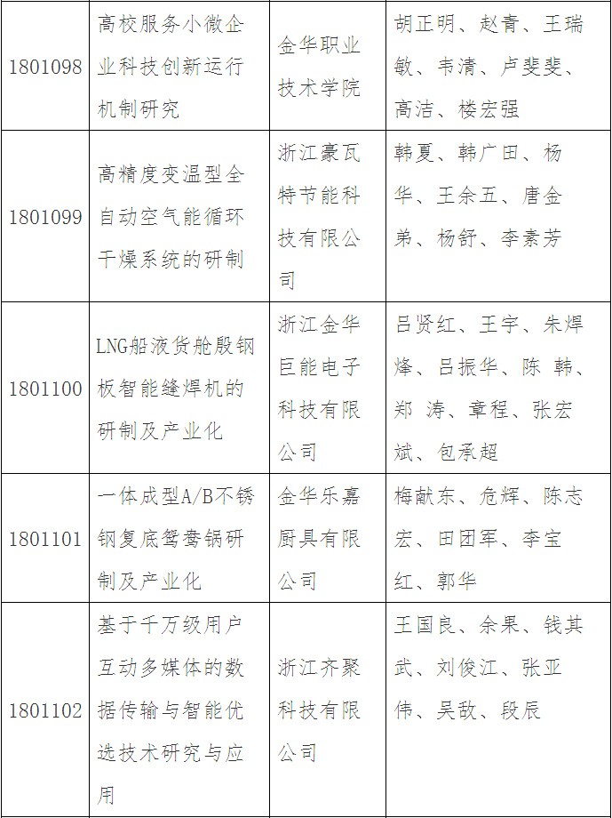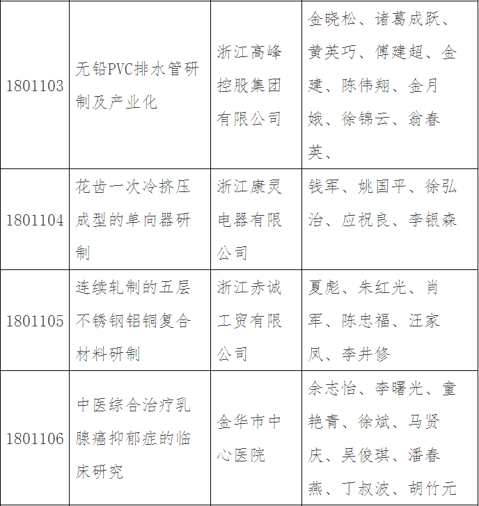 第三十五批金華市科技成果登記名單