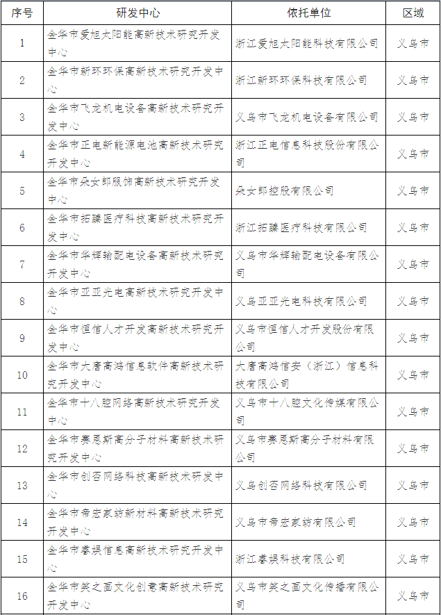 附件:2018年第三批金華市高新技術(shù)研究開發(fā)中心名單