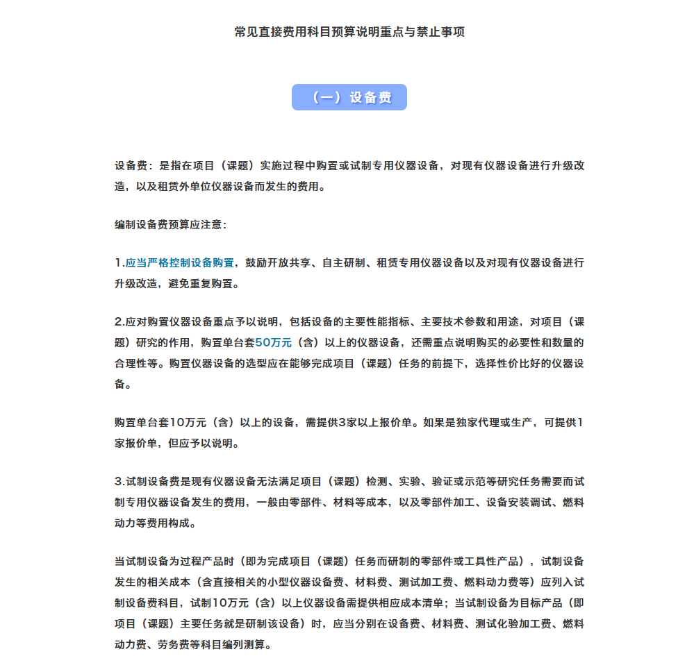 設(shè)備費:是指在項目(課題)實施過程中購置或試制專用儀器設(shè)備,對現(xiàn)有儀器設(shè)備進行升級改造,以及租賃外單位儀器設(shè)備而發(fā)生的費用。