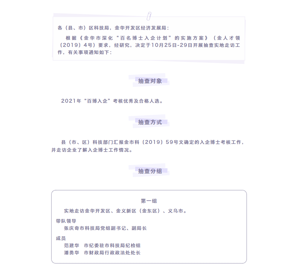 金華市科學技術局 關于開展2021年“百博入企”年度考核抽查走訪工作的通知