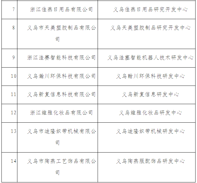 根據(jù)義烏市人民政府辦公室《義烏市“小微企業(yè)三年成長計(jì)劃”實(shí)施方案(2015-2017)義科〔2016〕17號)和金華科學(xué)技術(shù)局《關(guān)于科技型小微企業(yè)三年成長計(jì)劃統(tǒng)計(jì)有關(guān)問題的通知》、“關(guān)于重新印發(fā)《義烏市科技企業(yè)和研發(fā)機(jī)構(gòu)認(rèn)定、復(fù)核與推薦實(shí)施辦法》的通知”(義科〔2017〕15號)?,F(xiàn)公布以下企業(yè)為2017年第二批市級科技企業(yè)、市級研發(fā)機(jī)構(gòu):